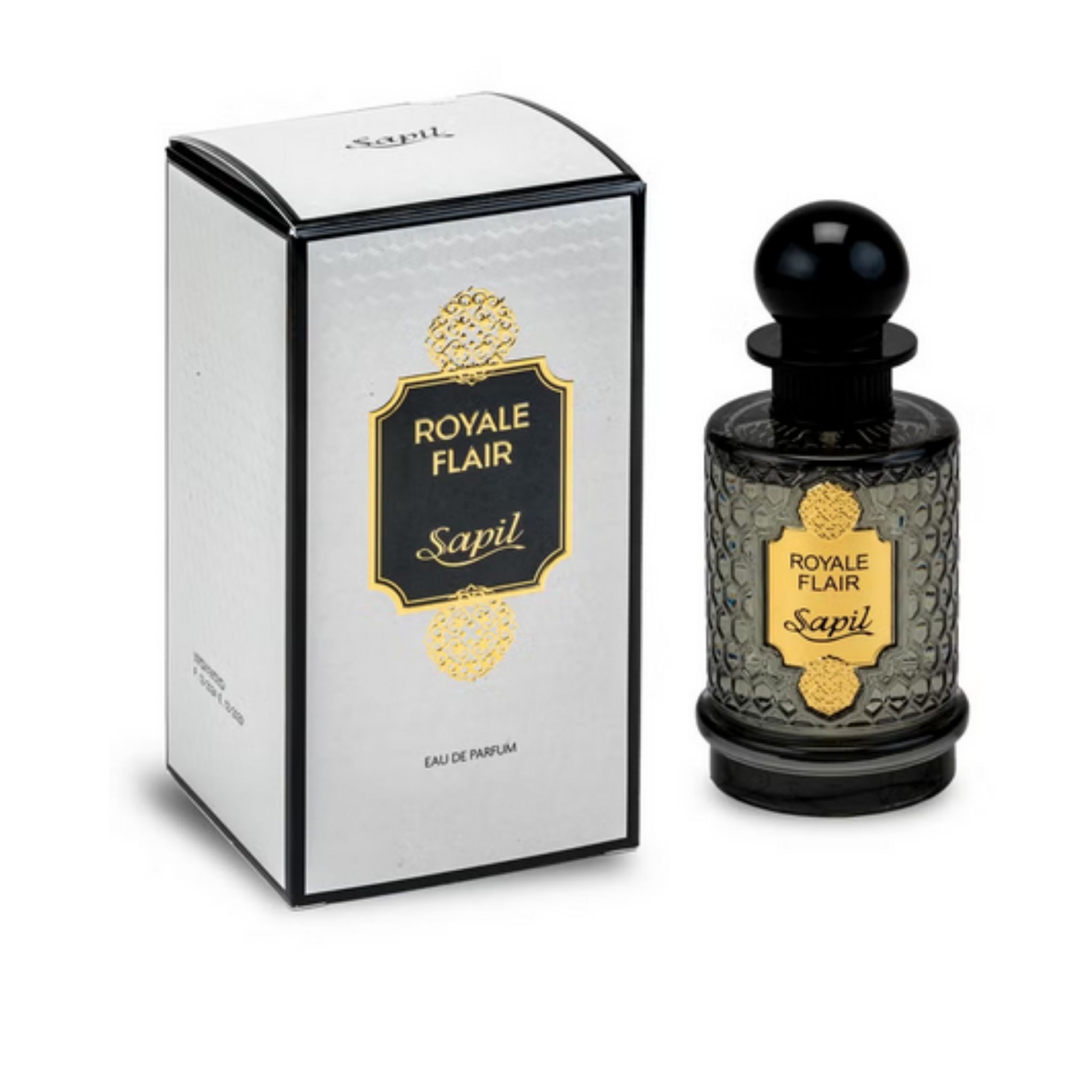 Royale Flair is a lively yet refined fragrance that captures the essence of royal charm and sophistication. The citrusy burst of mandarin, combined with exotic saffron and nutmeg, sets a vibrant tone that transitions into a heart of delicate florals. The base of oud, amber, and patchouli brings a regal warmth, wrapping the wearer in an air of timeless elegance.