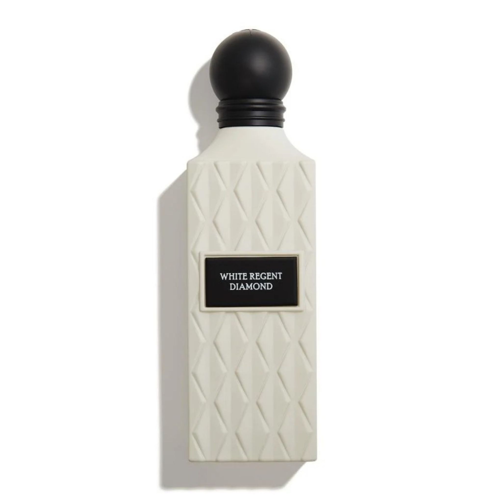 White Regent Diamond by Ibrahim Al Qurashi is a fragrance for women and men. This is a new fragrance. White Regent Diamond was launched in 2025. Top notes are Sandalwood, Cardamom, Tea and Fig; middle notes are Iris and Vetiver; base notes are Vanilla, Tonka Bean and Patchouli.
